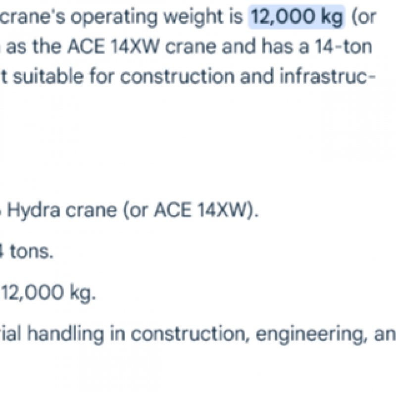 a model of a hydraulic mobile crane, such as the ACE 14XW, which has a 14-tonne lifting capacity. The "t" refers to tonnes and the "hydra" or "hydraulic" refers to the crane's operating system.