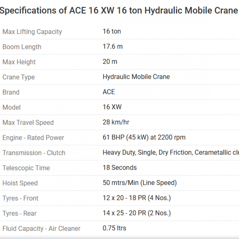 Lifting Capacity: 16 Ton
