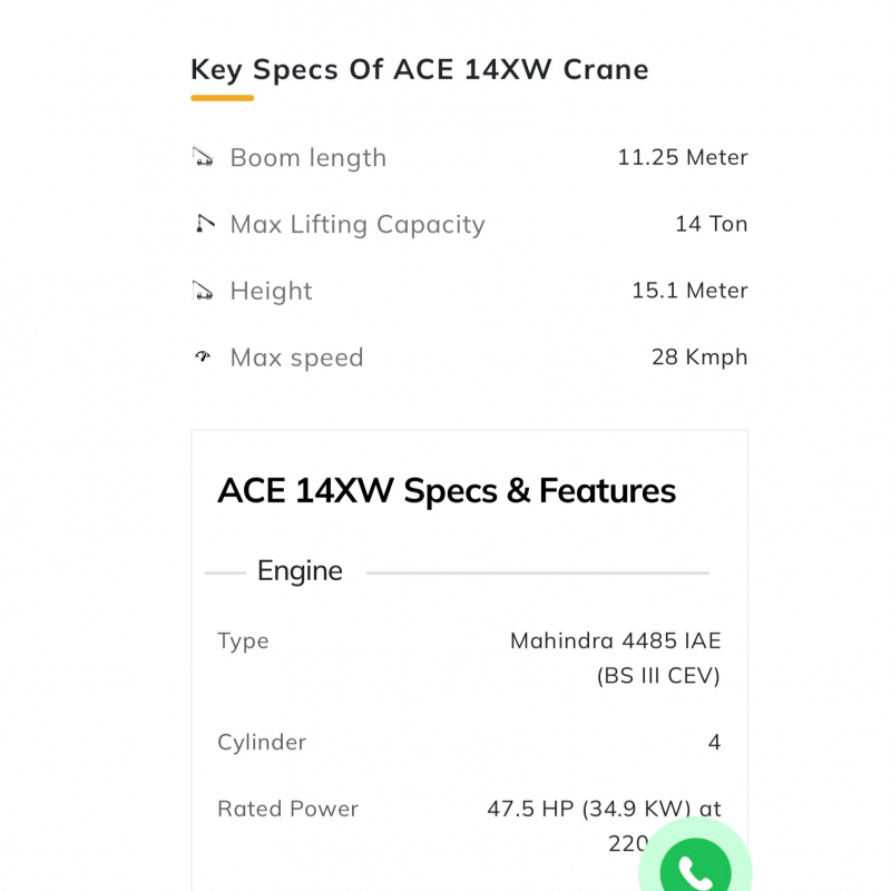 The ACE Hydra 14XW is a reliable pick-and-carry crane designed for efficient material handling. With a lifting capacity of 14 tons, it offers excellent stability, robust performance, and easy mobility on rough terrains. Its advanced safety features, strong build quality, and low maintenance make it ideal for construction and industrial use.