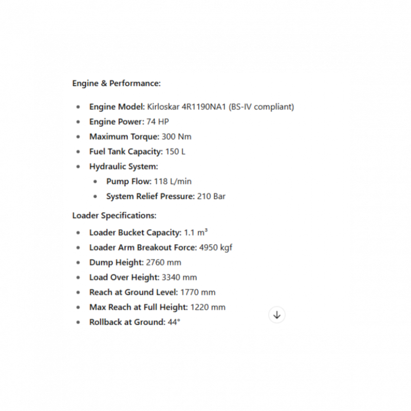 The ACE Backhoe Loader is a versatile construction machine built for digging, loading, and material handling. Equipped with a reliable engine, strong hydraulics, and durable structure, it ensures efficiency on tough job sites. Its comfortable operator cabin, high lifting capacity, and easy serviceability make it ideal for construction, agriculture, and infrastructure projects.