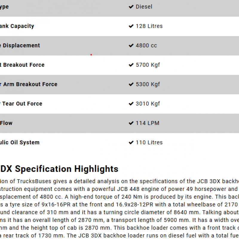 Powerful Engine: Equipped with JCB DieselMax 444 engine delivering approx. 76 HP for strong, fuel-efficient operation.