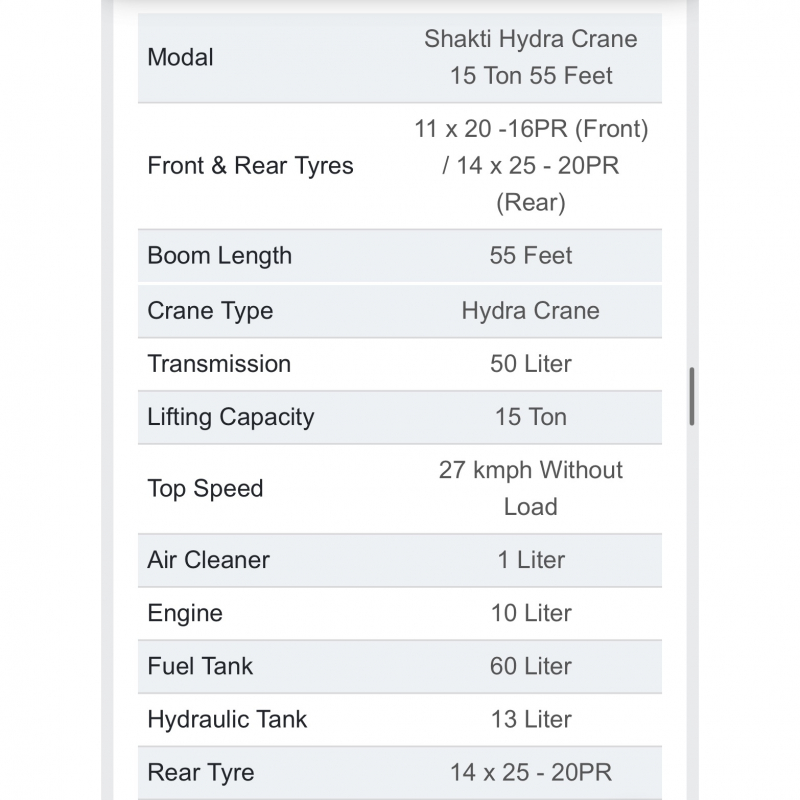 Uttam Shakti Hydra is a series of pick-and-carry hydraulic cranes by Uttam Construction Equipment (Ballabgarh, Haryana). They offer 12- to 15-ton capacity models and boom lengths up to 65 feet. Features include articulated power steering, sliding-mesh transmission, safety brakes, and optional fly-jib & safe-load indicator.